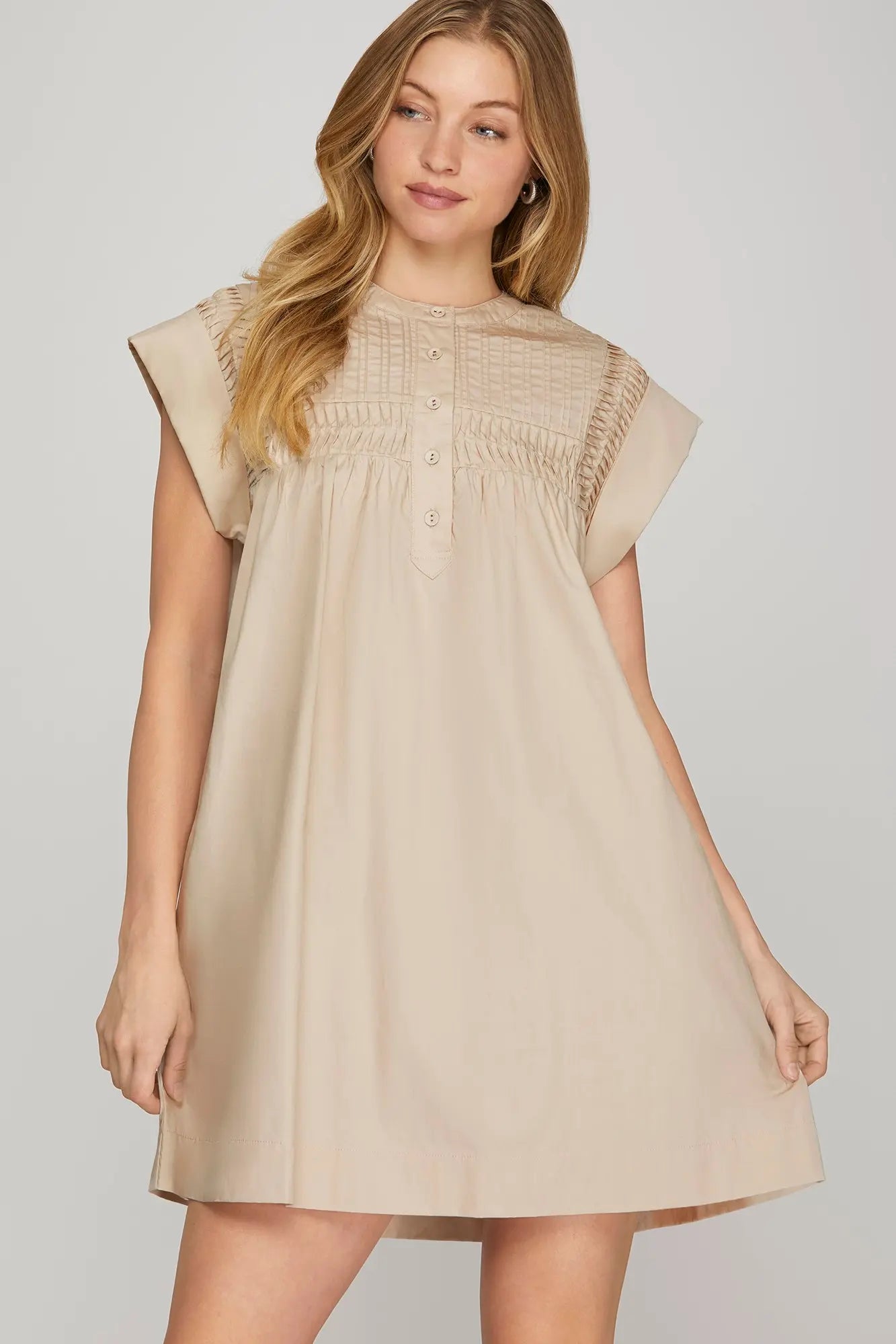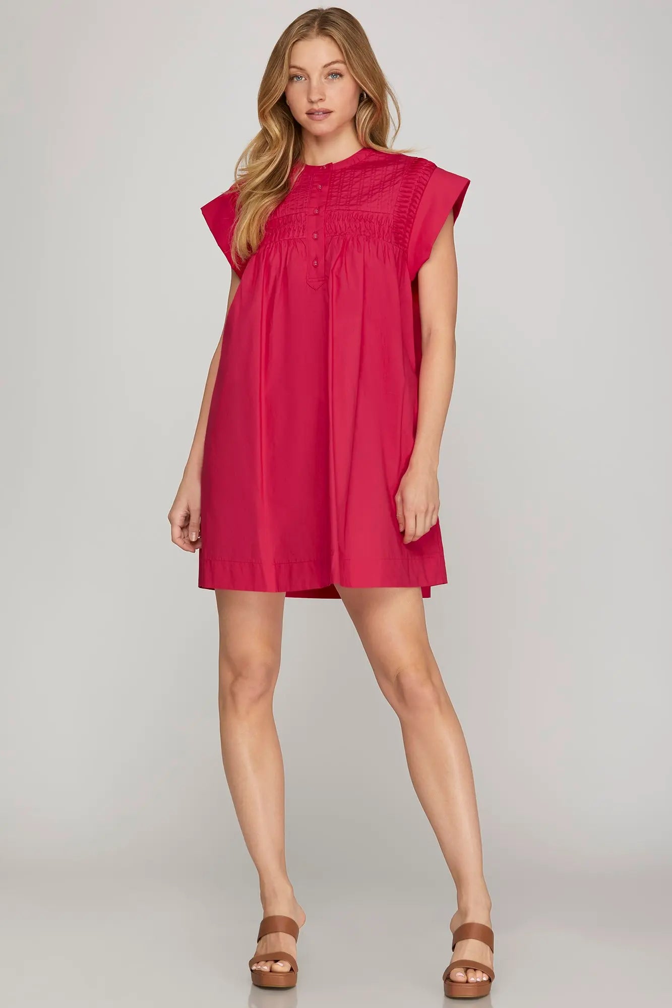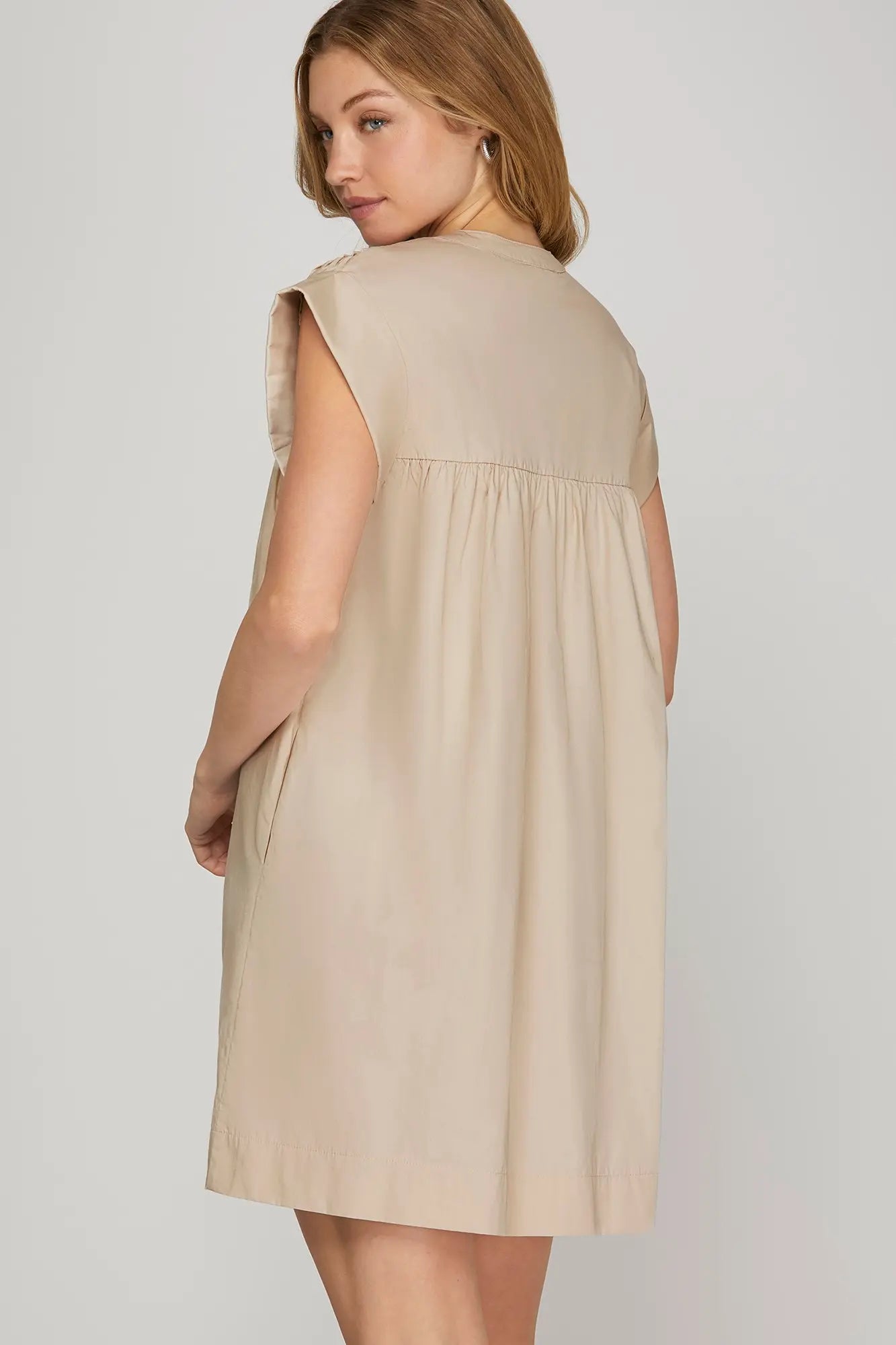 This dress is classic and easy to throw on by itself or with a jacket or cardigan over. Oversized by design and has pockets.
